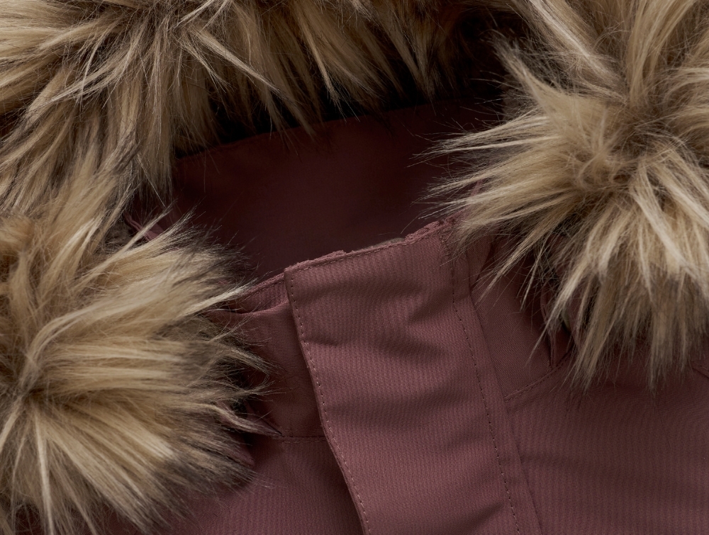 En Fant flyverdragt i rose taupe med aftagelig pelskant set forfraEn Fant flyverdragt i rose taupe med aftagelig pelskant set bagfraNærbillede af ærme og refleksdetalje på En Fant flyverdragt i rose taupeNærbillede af hætte med imiteret pels på En Fant flyverdragt i rose taupe