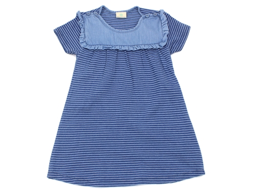 Blå kjole med striber og flæse fra En Fant