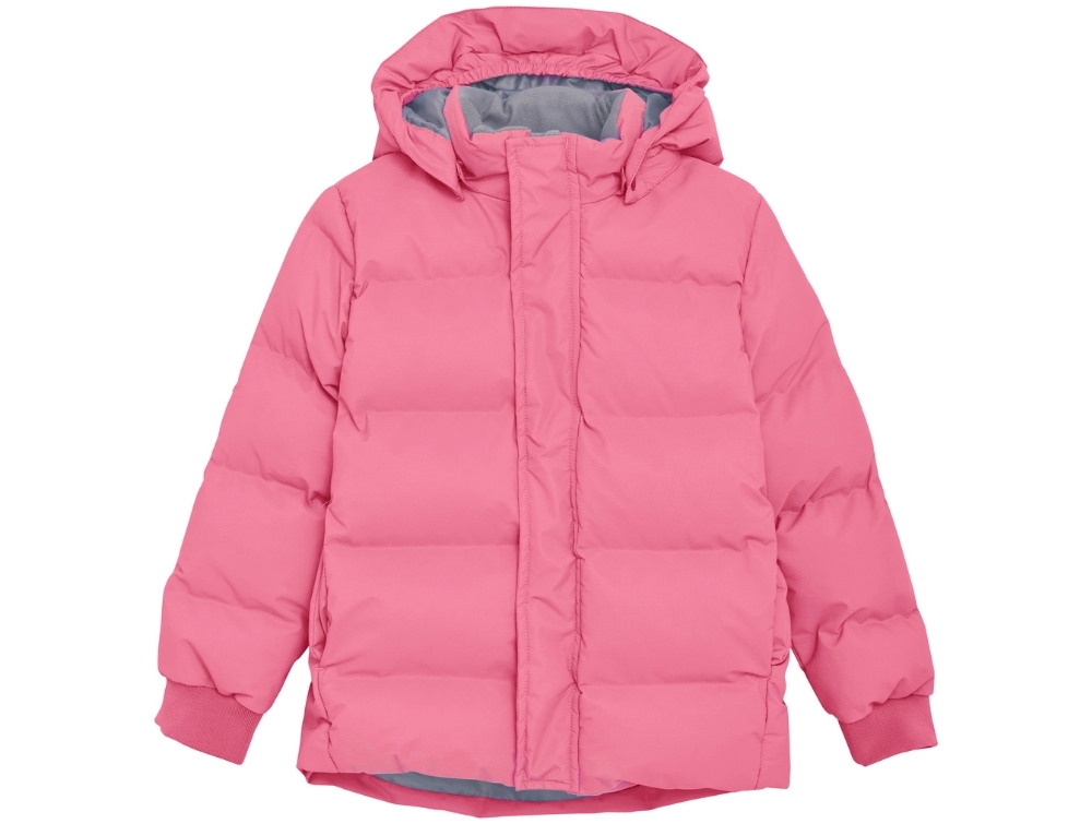En Fant vinterjakke i rosa med quiltet design og praktiske detaljer