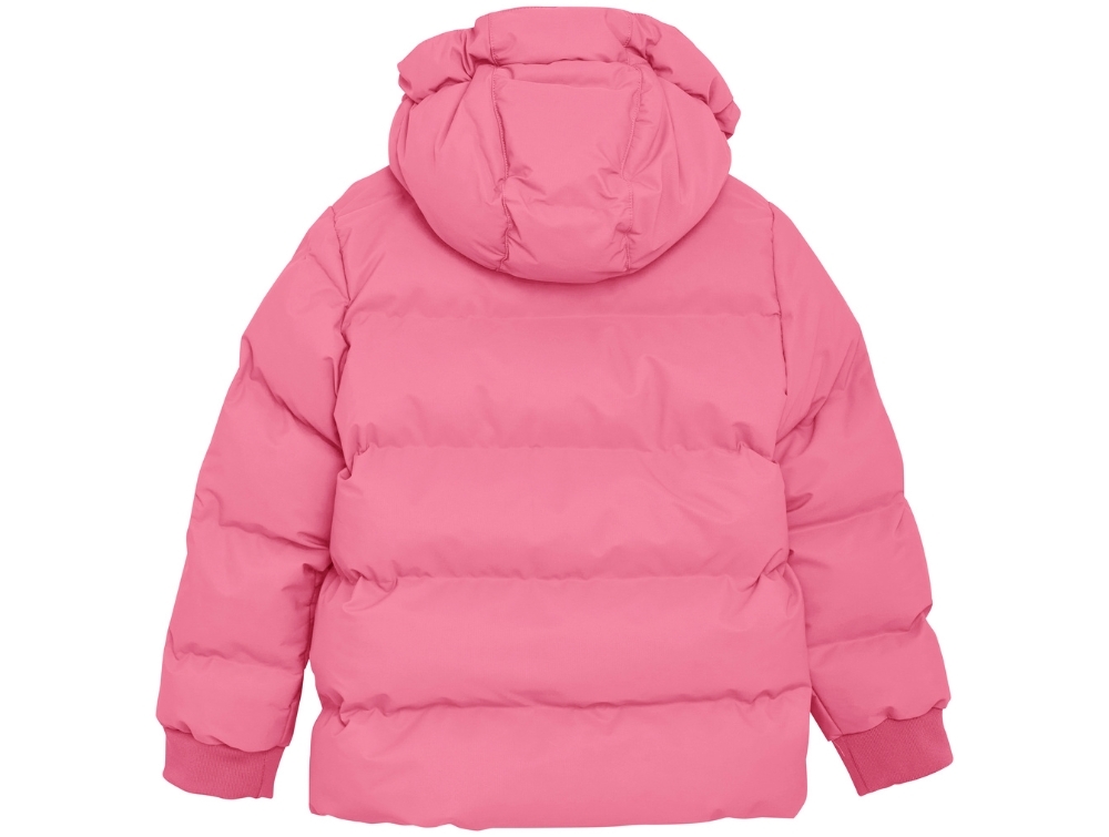 En Fant puffervinterjakke i flot pink nuance med quiltet design og glat overflade. Ydersiden har et ensfarvet udtryk og blød vattering.