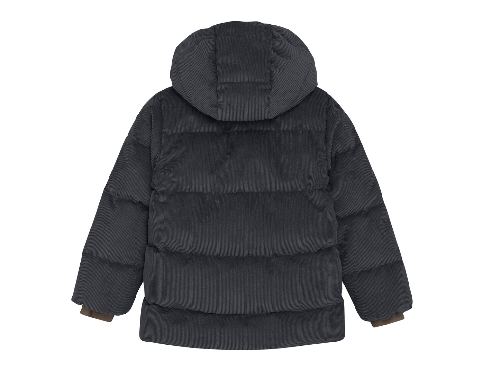 En Fant puffervinterjakke i mørk nuance i fløjl og vatteret design. Ydersiden i fløjl giver jakken et klassisk udtryk.