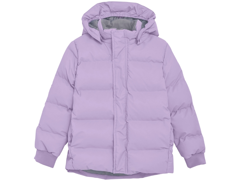 En Fant puffervinterjakke i flot lilla nuance med quiltet design og glat overflade. Ydersiden har et ensfarvet udtryk og blød vattering.