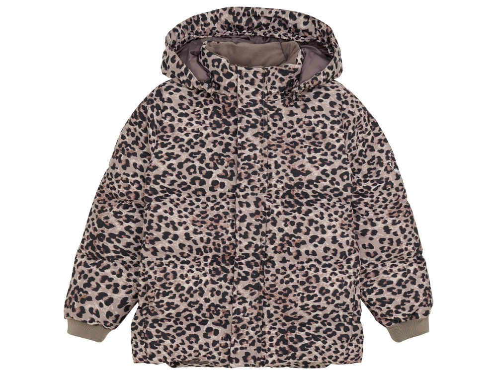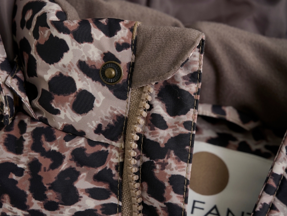 En Fant vinterjakke i pine bark med leopardprint og sømløse kanaler