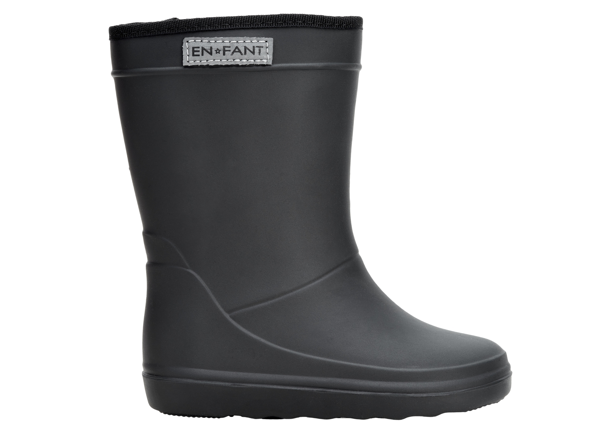 En Fant sorte termo gummistøvler med uldfoer set fra sidenEn Fant sorte termo gummistøvler med uldfoer set nedefra og fra sidenEn Fant sorte termo gummistøvler med uldfoer set fra siden