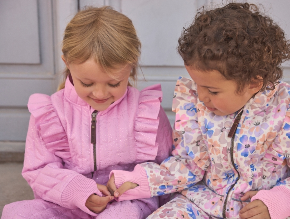En Fant termosæt bonbon med glimmerPige iklædt En Fant termosæt bonbon med flæser og glimmerEn Fant termosæt bonbon detalje med justerbar talje og refleks pipingEn Fant termosæt bonbon termobukserEn Fant termosæt bonbon set bagfra