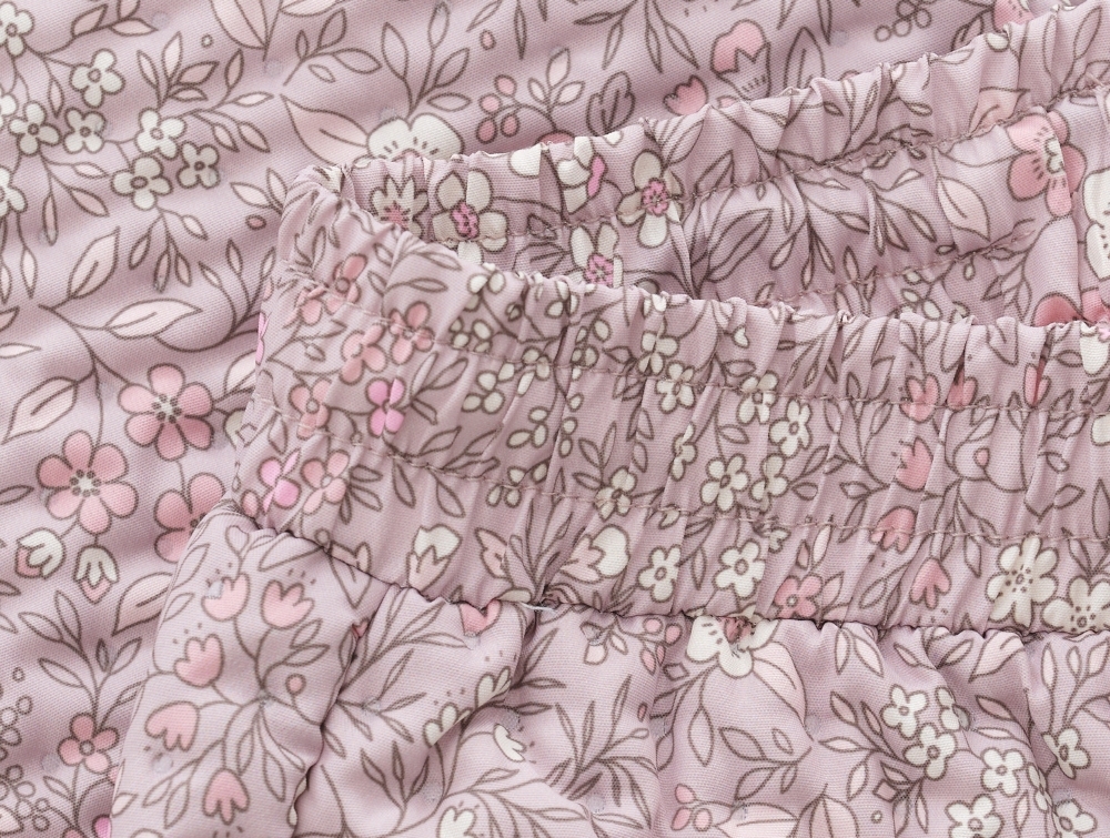 En Fant termosæt lys grå-rosa nuance med blomsterprint og flæser