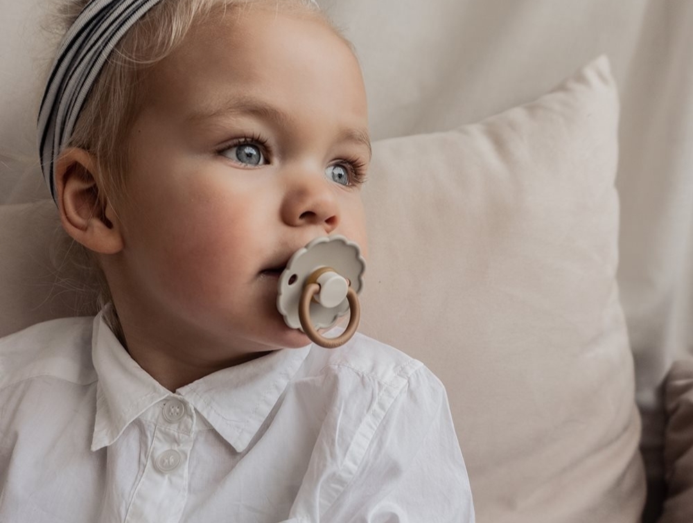 ‘Cinnamon Charm’ fås i to størrelser: Størrelse 1 (0-6 mdr.) med en rund suttedel på 27 mm og Størrelse 2 (6-18 mdr.) med en rund suttedel på 30 mm