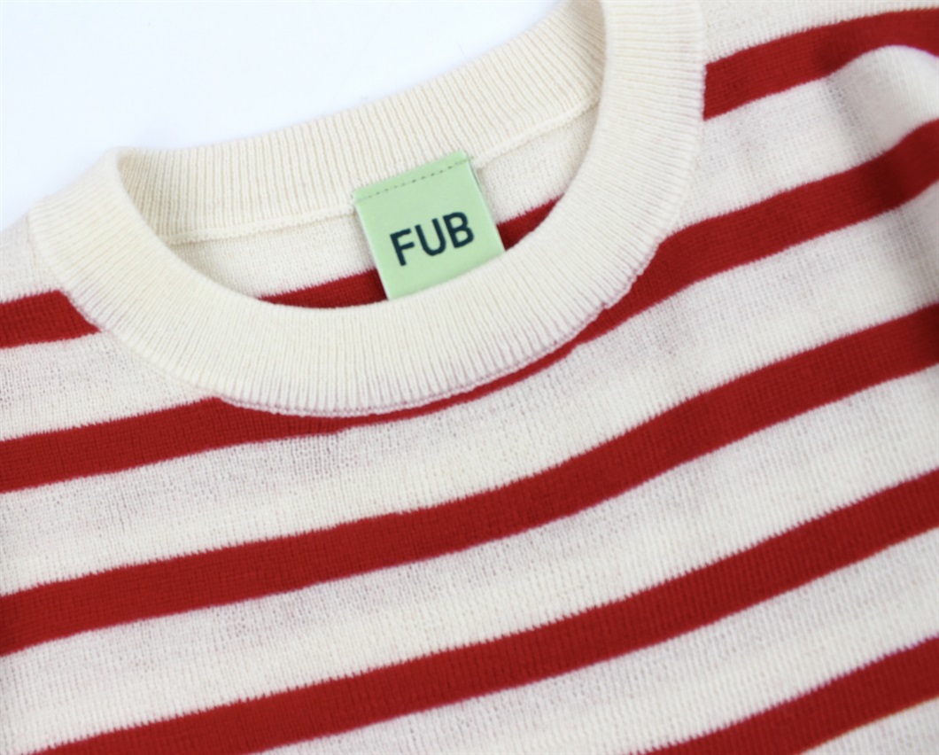 Mere information om FUB ecru/red stribet strikbluse merinould
