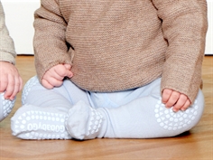 - Kravlestrømpebukserne har skridsikre knæ der beskytter når barnet kravler, plus skridsikre såler der giver godt greb på glatte overflader