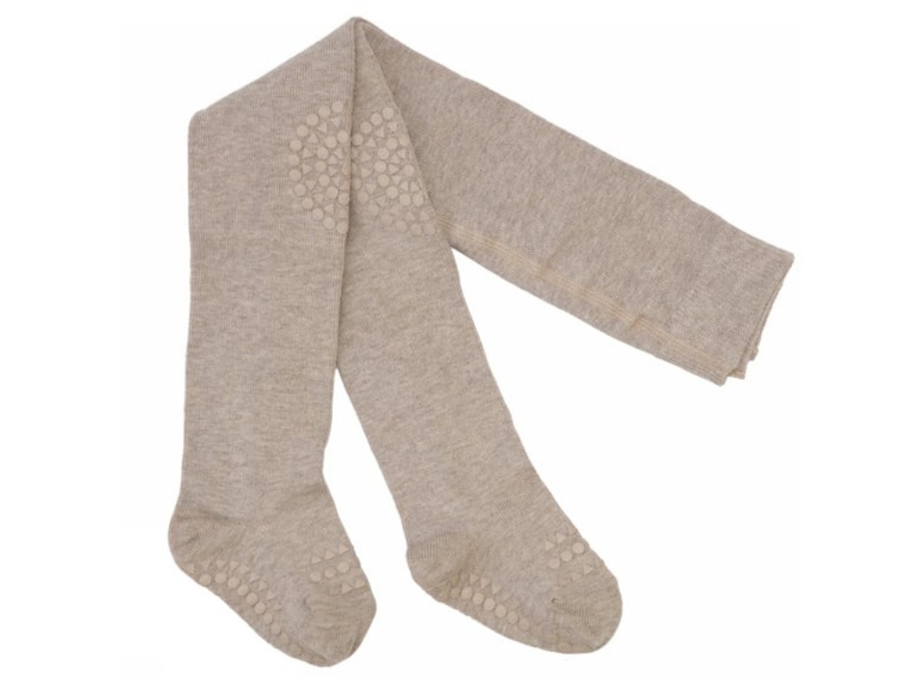 Kravlestrømpebukser i sand fra GoBabyGo. Designet med gummidutter på knæ, under fødderne og oven på tæerne, som giver barnet bedre greb, når det skal lære at kravle og gå.