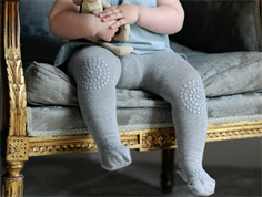 2 par strømper i farven misty plum fra GoBabyGo med skridsikre såler og gummidutter på tæerne. Produceret i 75% bomuld, 20% polyamid og 5% elastan.