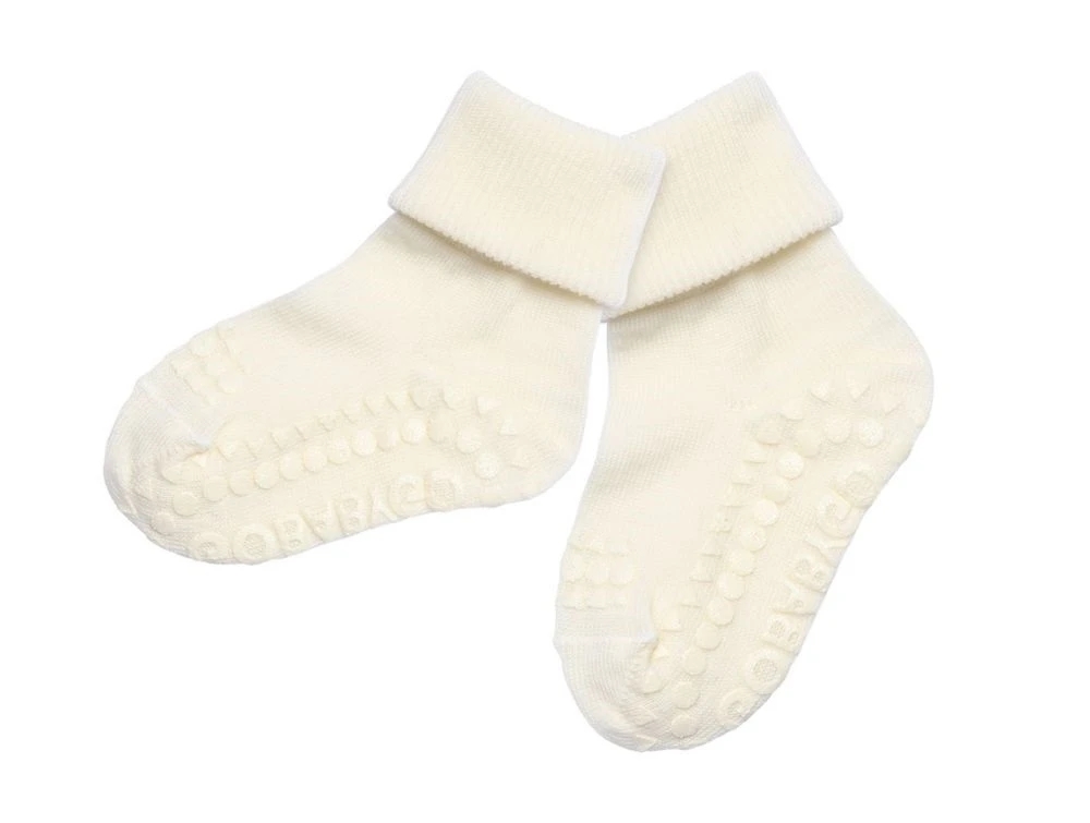 Mere information om GoBabyGo strømper skridsikre råhvid merinould