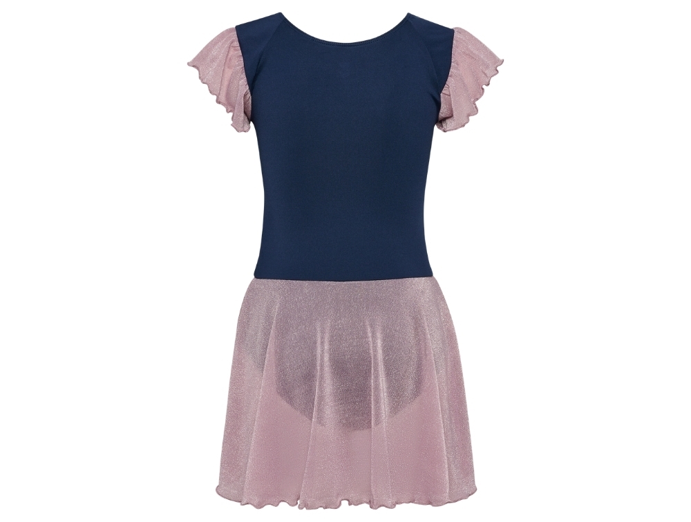 Modellen har korte ærmer med glimmer og et let skørt i samme glitrende materiale. På brystet ses et hummel logo med glitterprint, og bagpå er der nøglehulslukning med knap for nem påklædning.