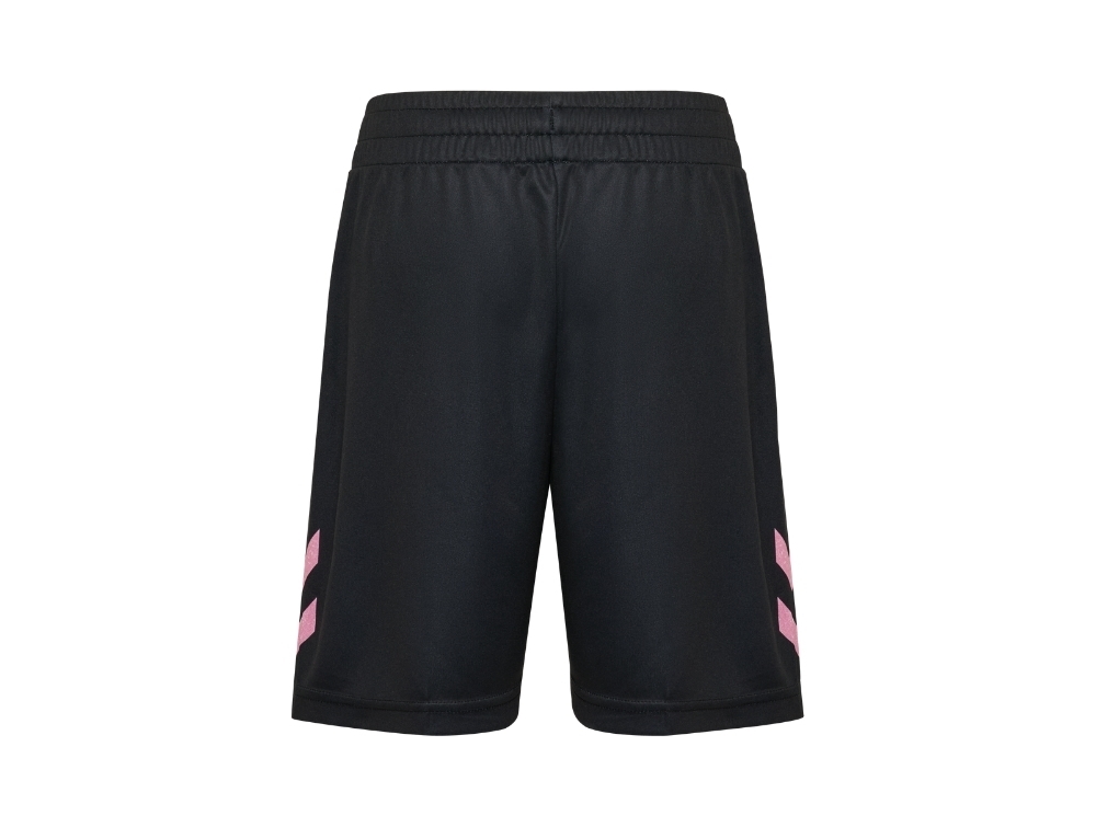 Hummel sportssæt i sort med rosa detaljer set forfraHummel sportssæt i sort med rosa 12-print detaljeHummel sportssæt T-Shirt i sort med rosa detaljer set bagfraHummel shorts i sort med rosa detaljer