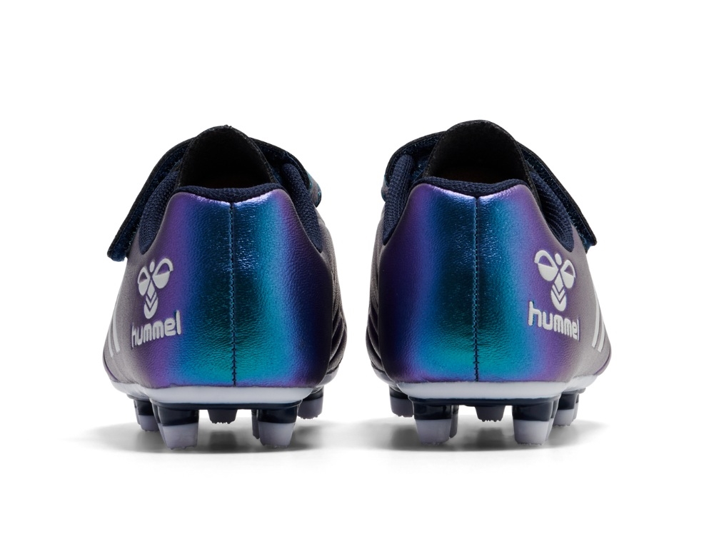 Fodboldstøvler i grøn metallisk nuance med farveskift fra hummel. Modellen Top Star FG JR er designet til børn, der spiller fodbold på græs eller kunstgræs. Den lette konstruktion og den fleksible ydersål gør støvlen velegnet til hurtige bevægelser på banen.