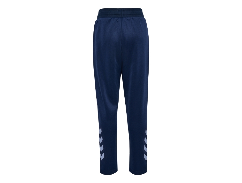 Jakken har gennemgående lynlås, høj krave og ribkant ved ærmer og talje. Bukserne har elastik i taljen med justerbar snøre for en fleksibel pasform. På ærmer og ben ses Hummels chevron logo detalje, som er en del af brandets velkendte design.