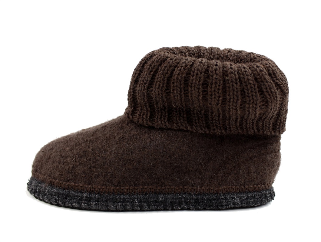 Uldfilthjemmesko fra Huttelihut i farven coffee bean.