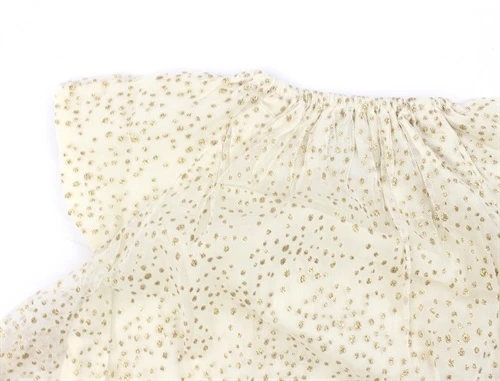Tylkjole fra Huttelihut med guldglimmerdetaljebillede af tylkjole fra Huttelihut med guldglimmer