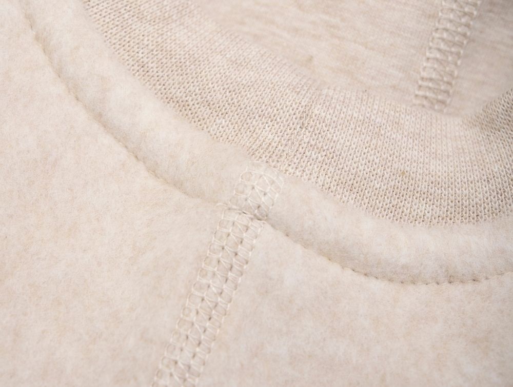 Elefanthue i beige nuance fra Huttelihut i blød bomuldsfleece med strækbar rib på indersiden.