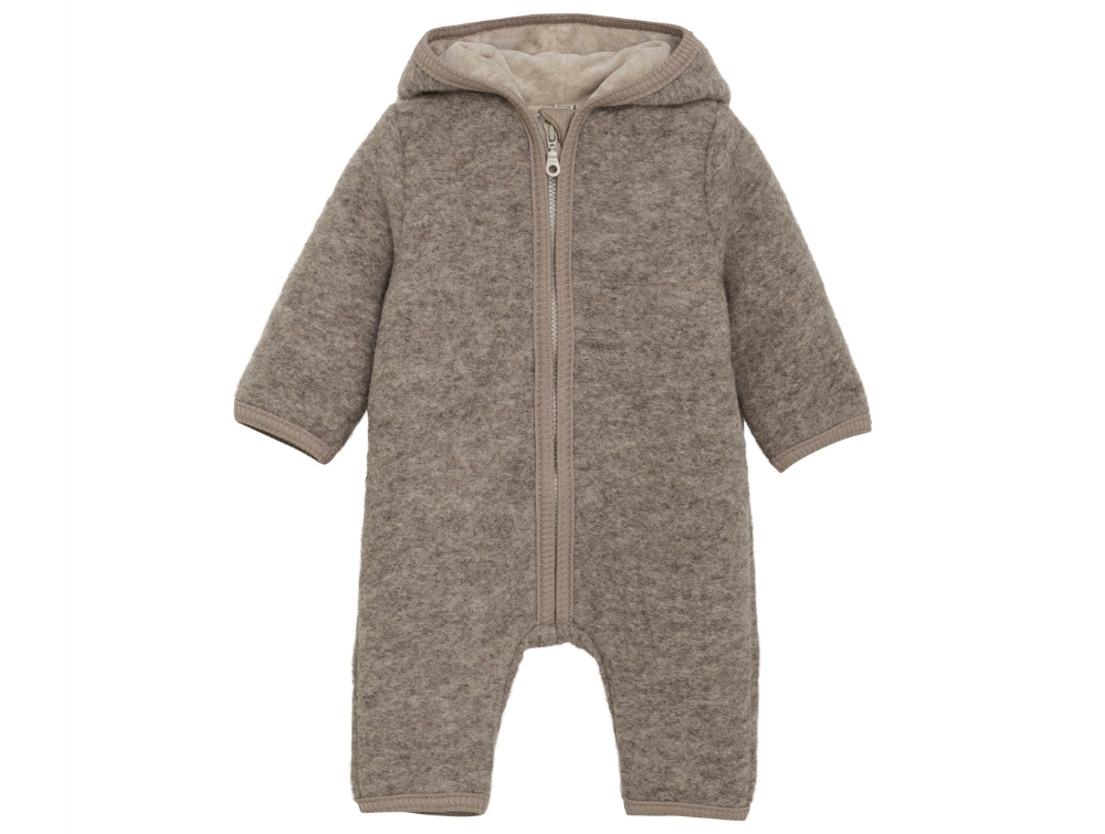 Denne heldragt er fremstillet i en varm uldblanding med bomuldsforing, som giver en blød og behagelig oplevelse for de mindste. Tilsætningen af polyester gør materialet mere slidstærkt sammenlignet med en kvalitet i 100% uld.