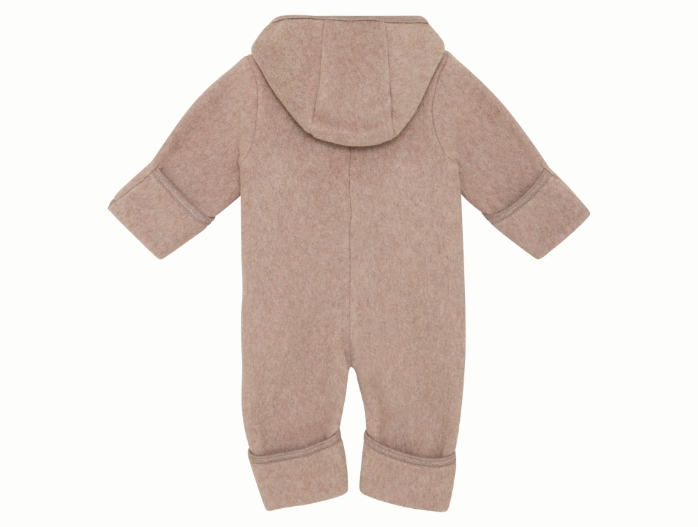 Dragten er fremstillet i 100% bomuldsfleece, som føles ekstra blød mod barnets hud. Den har hætte, lynlås foran med hagebeskytter samt ombuk ved hænder og fødder, som holder på varmen. En lun og behagelig dragt til de kølige dage.