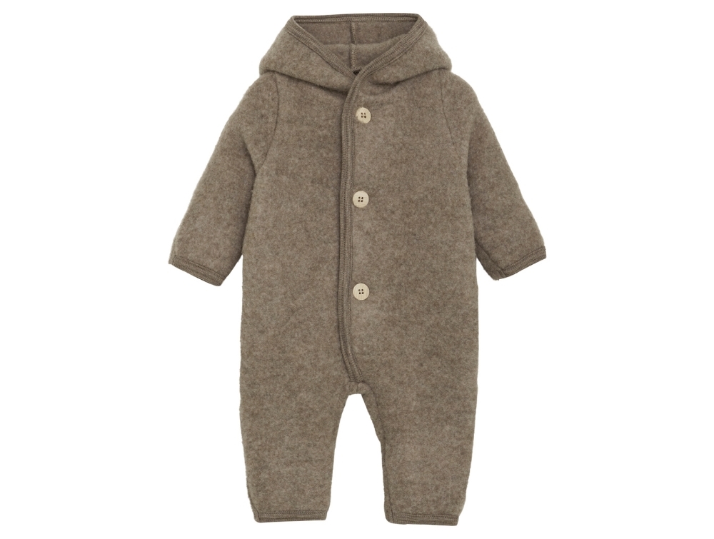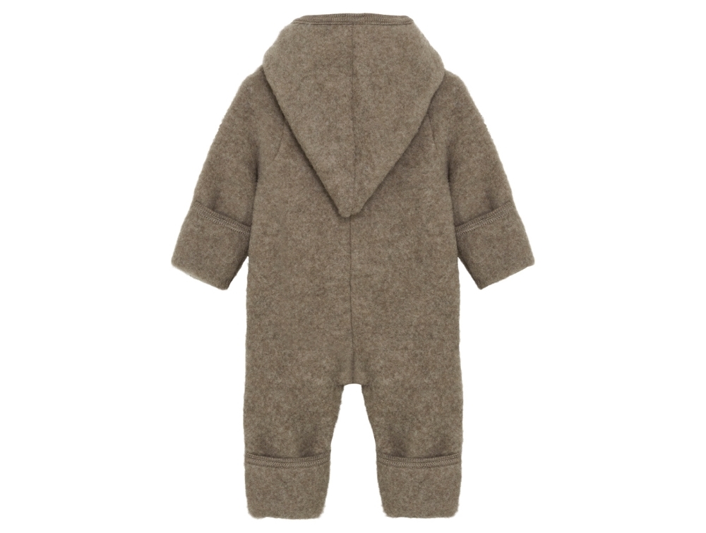 Køredragt i savanne melange nuance fra Huttelihut. Dragten er lavet i blød uldfleece og har en spids hætte.