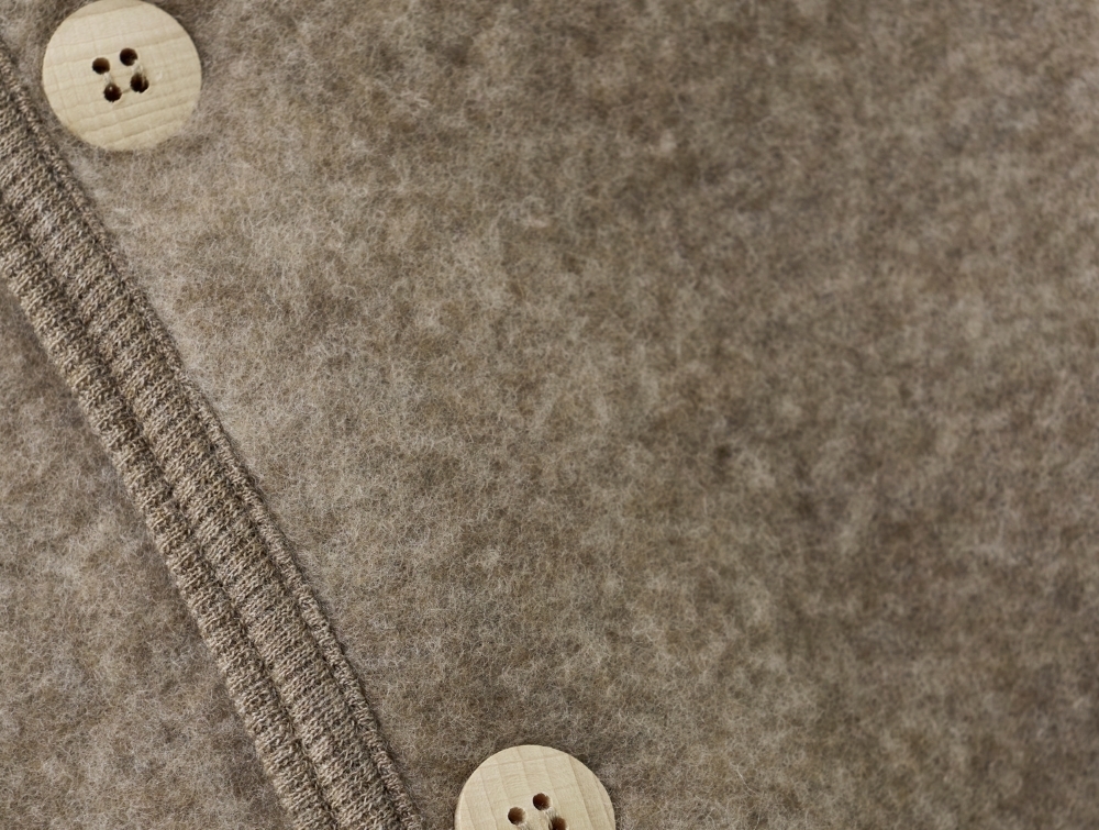 Huttelihut køredragt i savanne melange med blød uldfleece og spids hætte set forfraHuttelihut køredragt i savanne melange med blød uldfleece og spids hætte set bagfraHuttelihut køredragt i savanne melange med blød uldfleece og spids hætte set tæt på knap