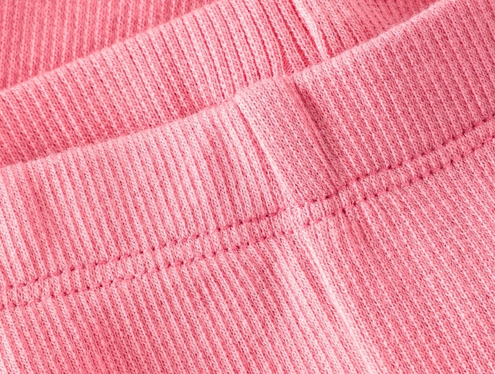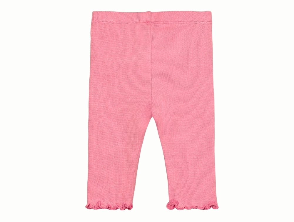 Leggings i rosa nuance (plumeria) fra Huttelihut i blød ribkvalitet med fine bølgekanter nederst på benene.