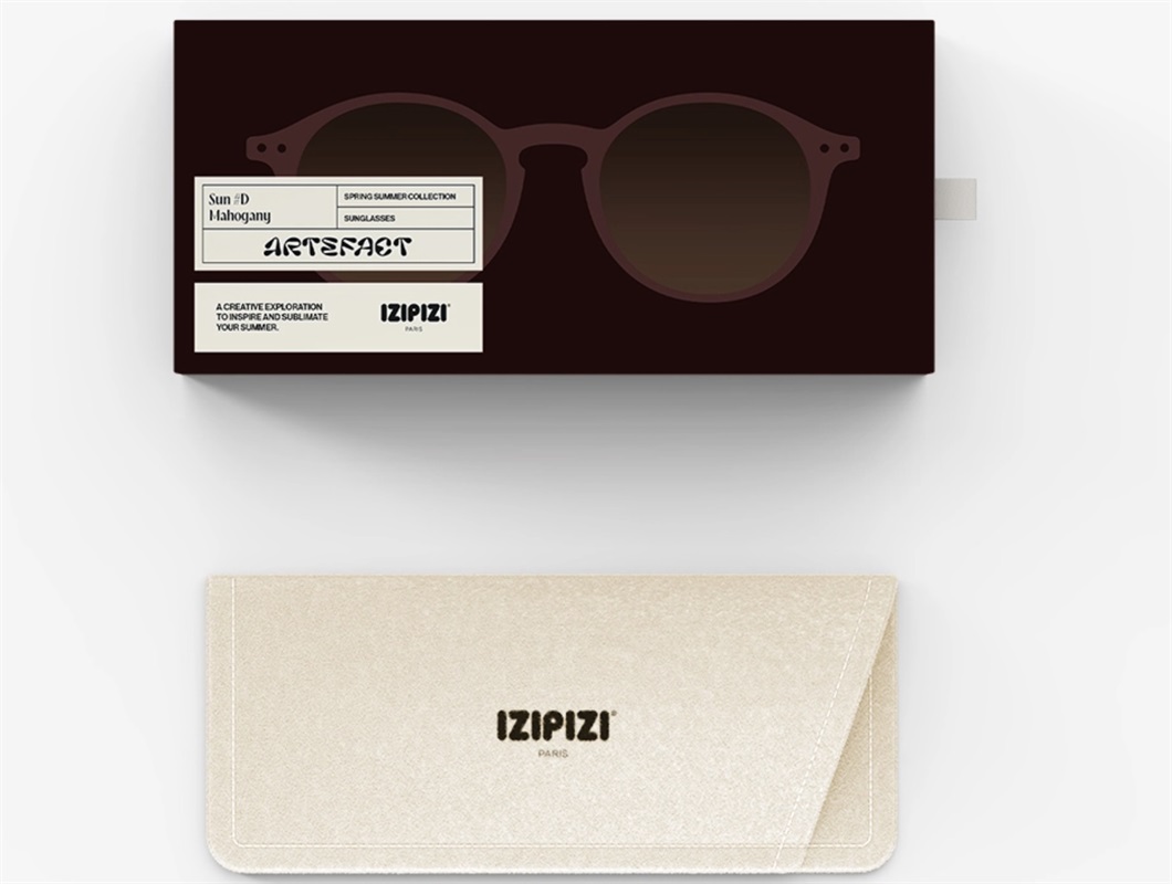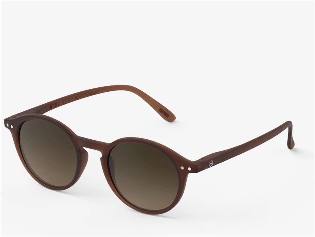 Solbrille til voksne i modellen #d med 100% UV-beskyttelse i farven mahogany fra IZIPIZI Paris.