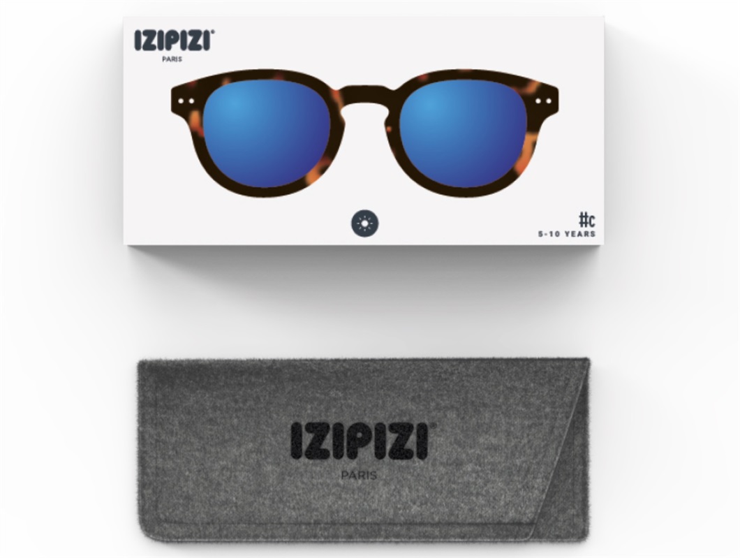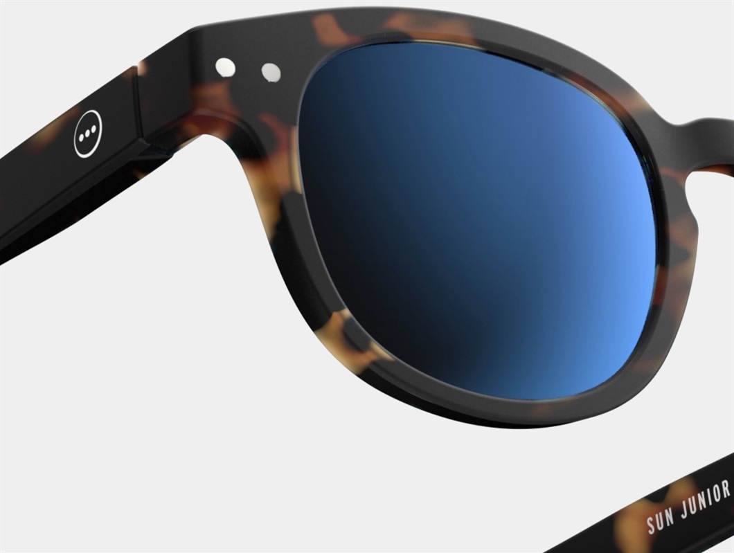Børnesolbriller i modellen #c med 100% UV-beskyttelse i farven tortoise mirror fra IZIPIZI Paris.