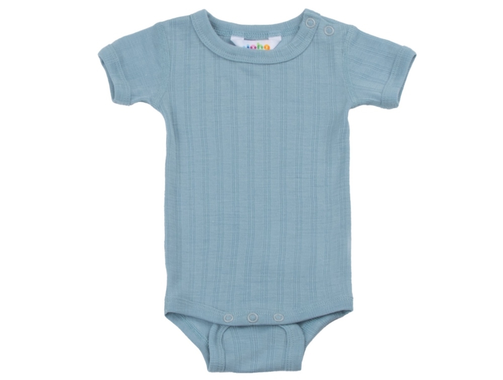 Joha uld/silke body lyseblå med korte ærmer i merinould og silke