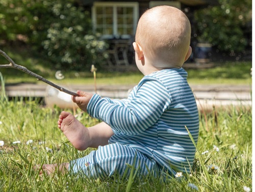 Den er fremstillet i en ekstra fin kvalitet af merinould med 15% silke, som gør stoffet utroligt blødt og behageligt mod huden. Uld/silke er en temperaturregulerende kombination, der holder barnet varmt uden at overophede. Uldens naturlige egenskaber absorberer fugt og holder huden tør, mens silken giver en ekstra blød fornemmelse. Heldragten er derfor anvendelig året rundt.