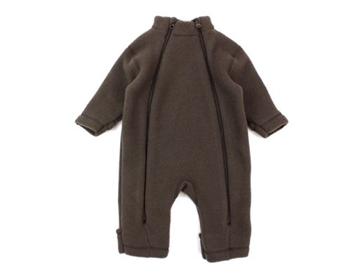 Joha mørkebrun heldragt i børstet uld med lynlåse