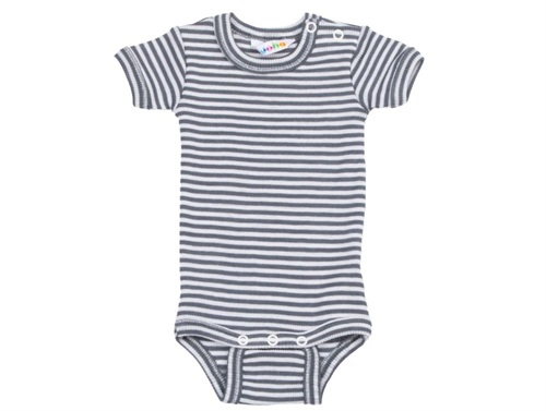 Blød body i ribkvalitet med korte ærmer i mørk grå (dark grey) stribe fra Joha.