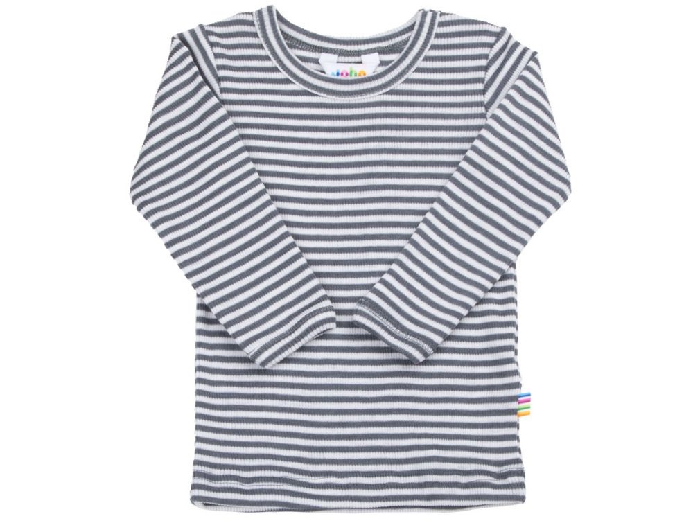 Langærmet bluse i ribkvalitet med mørk grå (dark grey) striber fra Joha