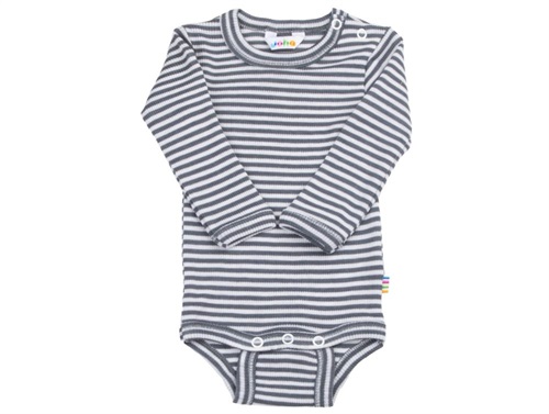 Blød body i ribkvalitet med lange ærmer i mørk grå (dark grey) stribe fra Joha.
