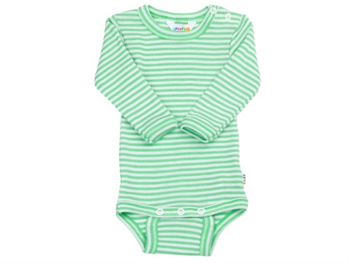 Blød body i ribkvalitet med lange ærmer i grøn (green) stribe fra Joha.