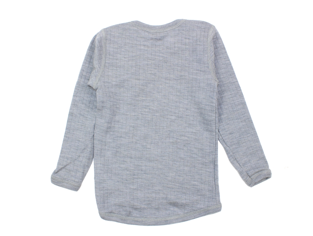 Joha bluse lysegrå meleret i merinould med lange ærmer