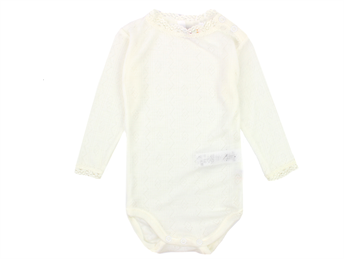 Joha body i natur merinould og silke med blonde og trykknapper