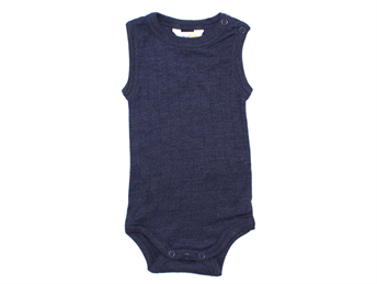 Navy body uden ærmer i en blød blanding af merinould og silke fra Joha. Modellen er fremstillet i 85% merinould og 15% silke, hvilket giver en let, blød og elastisk kvalitet. Trykknapper på begge skuldre og mellem benene gør den nem at tage af og på.