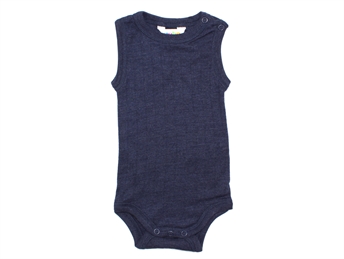 Navy body uden ærmer i en blød blanding af merinould og silke fra Joha. Modellen er fremstillet i 85% merinould og 15% silke, hvilket giver en let, blød og elastisk kvalitet. Trykknapper på begge skuldre og mellem benene gør den nem at tage af og på.