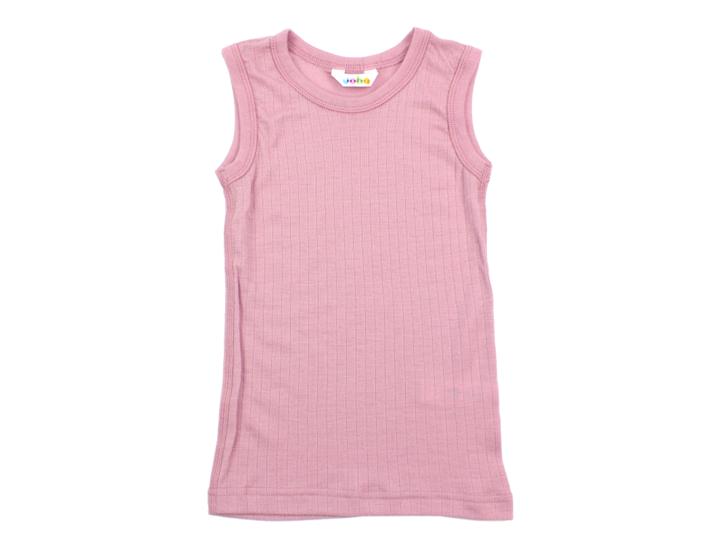 Undertrøje i old rose fra Joha i et enkelt unisex design. Modellen har brede skulderstropper og rund hals og er fremstillet i en let merinould.