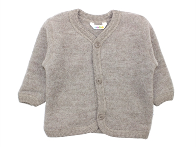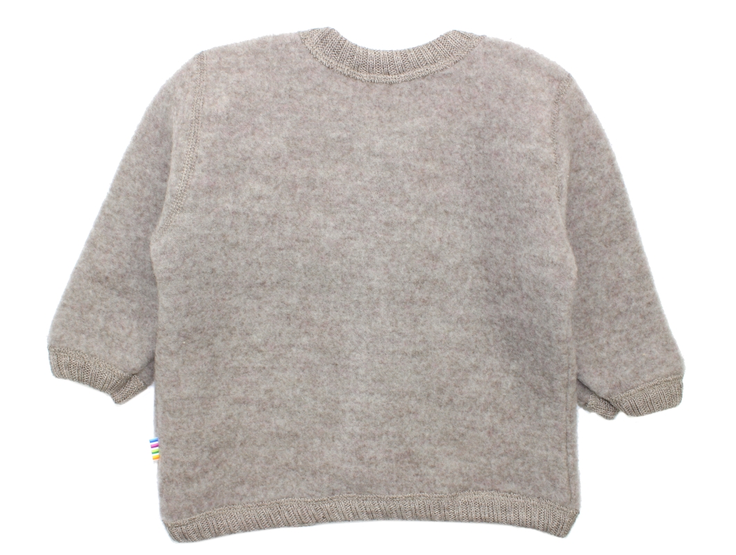 Merinouldens naturlige egenskaber gør cardiganen temperaturregulerende og åndbar, så barnet holdes varmt i koldt vejr og køligt på varmere dage. Bemærk, at opkradset børstet uld naturligt vil fnulre i brug.