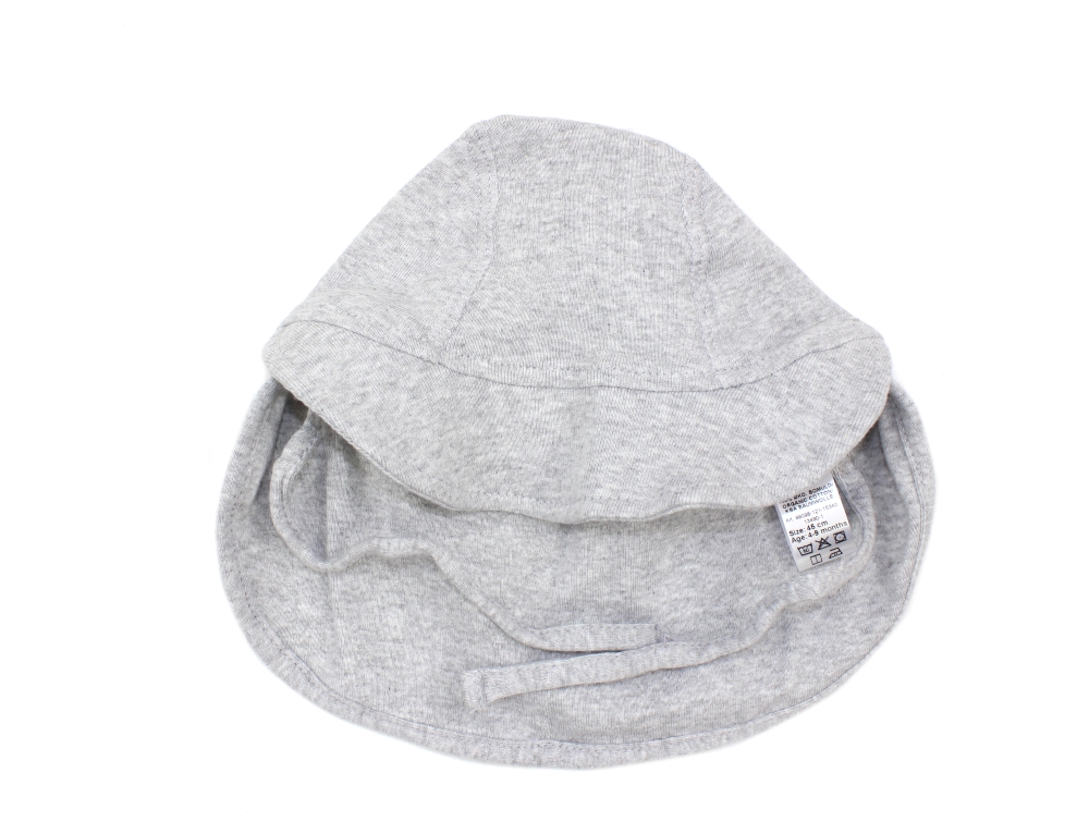 Skøn gråmeleret solhat med ekstra lang skygge i nakken, der giver god beskyttelse mod solen. Elastikken i nakken sikrer, at hatten sidder godt på hovedet, og sammen med bindestropperne holdes den på plads. Perfekt til de små på solrige sommerdage.