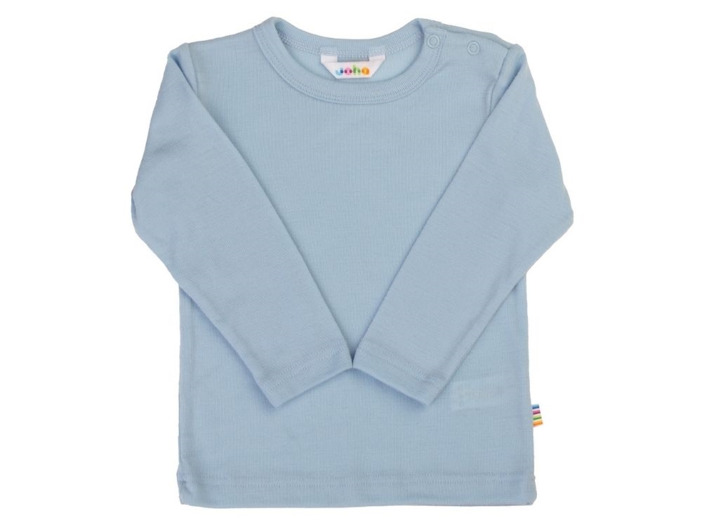 Uldblusen har almindelig pasform og er velegnet som inderste lag året rundt. Praktiske trykknapper ved skulderen gør den nem at tage af og på i de mindste størrelser.