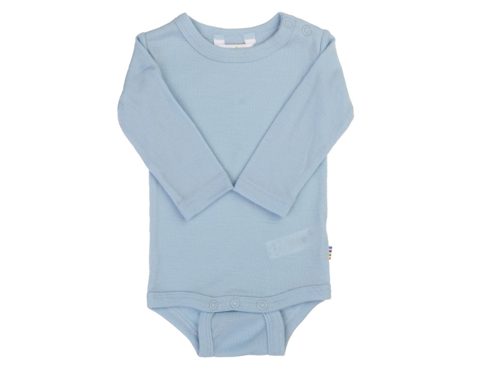 Uldbodyen har almindelig pasform og er udstyret med trykknapper ved den ene skulder samt mellem benene, hvilket gør påklædningen nem i hverdagen.
