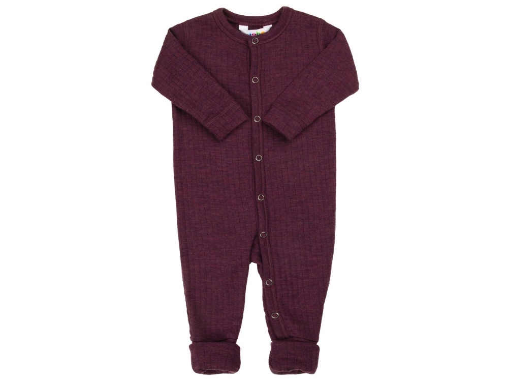 Ulddragt i blommefarvet nuance fra Joha fremstillet i 100% merinould. Dragten har lange ærmer og praktisk lukning med trykknapper hele vejen ned gennem det ene ben. Den har desuden 2-i-1 fødder, som kan foldes ud eller ind efter behov.