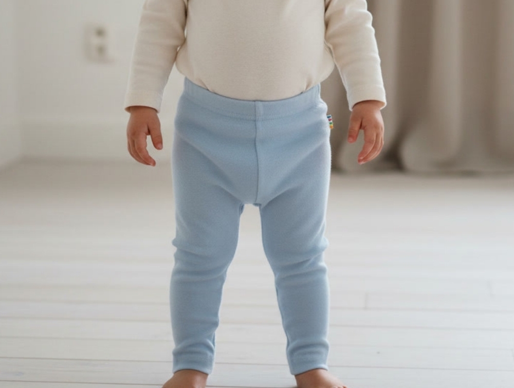 Uldleggingsene har almindelig pasform og fungerer godt som inderste lag til baby. En enkel og praktisk model, der giver god bevægelsesfrihed.