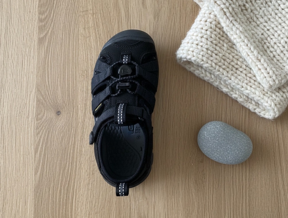 Selvom snuden er forholdsvis bred, sidder Seacamp godt til omkring hælen og midtfoden. Det giver ekstra støtte – især til børn med lidt smallere hæle – takket være lace-lock-systemet og den tætsiddende pasform.
