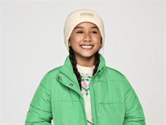 KIDS ONLY beanie i råhvid nuance med perler foranKIDS ONLY beanie i råhvid nuance med perler